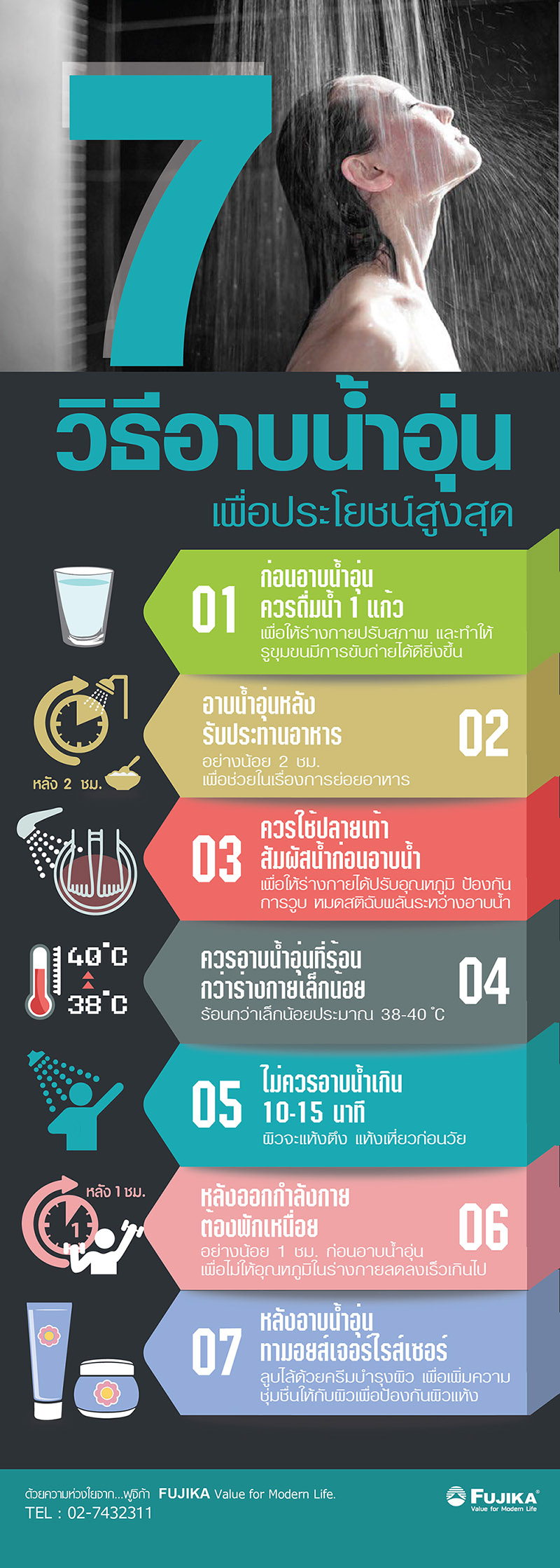 • ไม่ควรอาบน้ำอุ่นเกิน 10-15 นาที